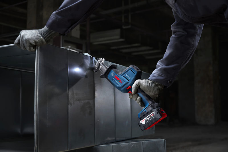 Säbelsäge GSA 18V-24, Das Abschneiden von Materialien an engen Stellen oder in der Nähe von Wänden kann umständlich und schwierig sein. Die Akku-Säbelsäge Bosch GSA 18V-24 Professional erleichtert solche Sägearbeiten durch ihr kompaktes und ergonomisches Design. Diese Allzwecksäge ist ideal für enge Stellen und besitzt eine neigbare Fußplatte zum Sägen von Rohren sowie eine LED zur effektiven Beleuchtung der Schnittlinie an dunklen Orten. Und ihr ausgezeichnetes Verhältnis zwischen Leistung und Gewicht erleichtert kraftvolles Sägen. Zudem sägt dieses Werkzeug dank seiner optimierten Hubzahl und Hublänge schnell und verklemmungsfrei. Die GSA 18V-24 ist komfortabel zu verwenden und vermeidet Ermüdung durch ihren innovativen Gegengewichtsmechanismus, der Vibrationen minimiert. Die Akku-Säbelsäge GSA 18V-24 Professional ist erste Wahl für Heizungs-, Lüftungs- und Klimatechniker, Klempner, Elektriker, Fundament- und Strukturarbeiter, Tischler und Zimmerleute. Sie ist ideal für einfaches Sägen auch an engen Stellen. Die GSA 18V-24 Professional besitzt einen kraftvollen bürstenlosen Motor, variable Geschwindigkeitskontrolle, einen werkzeuglosen SDS-Sägeblatthalter, eine neigbare Fußplatte und ein LED-Licht. 1 x Säbelsägeblatt S 2345 X, Progressor for Wood (separat erhältlich als 2er-Pack: 2 608 654 403). 1 x Säbelsägeblatt S 922 EF, Flexible for Metal (separat erhältlich als 2er-Pack: 2 608 656 038). Leiterclip (1600 A02 3G7)