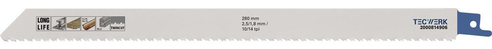 Säbelsägeblatt Länge 280 mm Breite 19 mm Zahnteilung TPI 10/14 2,5/1,8 mm gefräst, geschränkt 5 Stück / Karte