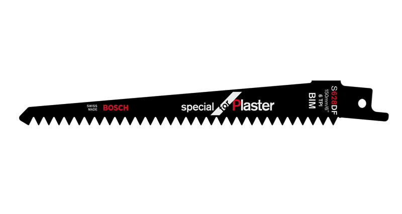 Das S 628 DF Special for Plaster Säbelsägeblatt macht saubere Kurvenschnitte in Sonderwerkstoffe. Mit seinen geschliffenen Zähnen liefert ausrissfreie Ergebnisse, während der vollständig verjüngte Körper einfachen Zugang zu schwer erreichbaren Stellen bietet und Kurvenschnitte ermöglicht. Die geschliffene Spitze eignet sich für Tauchschnitte. Die Zahnleiste aus gehärtetem HSS (Schnellarbeitsstahl) und BIM (Bimetall) ist mit hochelastischem HCS (Kohlenstoffstahl) verstärkt, wodurch das Blatt zum Schneiden von Schleifmaterial, wie Gipskartonplatten, geeignet ist. Die Standardlänge von 150 mm ermöglicht eine Schnittleistung von bis zu 100 mm.