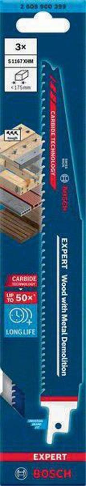 Säbelsägeblatt Wood Metal Demolition S 1167 XHM Länge 225 mm Breite 25 mm 5 mm S-Schaft 3 Stück / Karte E6441107