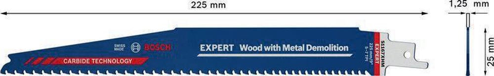 Säbelsägeblatt Wood Metal Demolition S 1167 XHM Länge 225 mm Breite 25 mm 5 mm S-Schaft 1 Stück / Karte E6423421