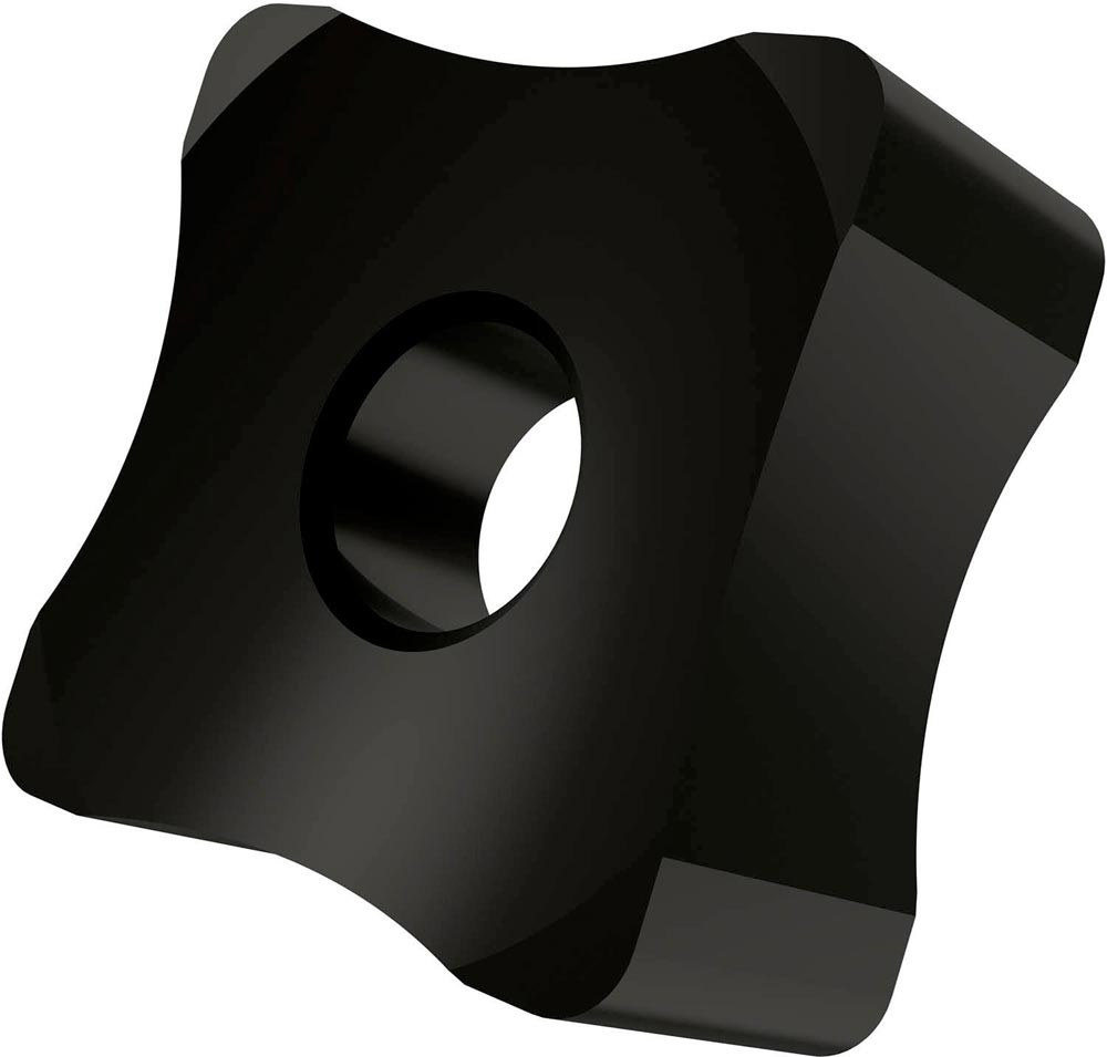 Doppelseitige Scarfing Wendeschneidplatte · quadratisch mit einer Hauptschneidenlänge von 25.4mm · 12mm dick und einen Arbeitsradius von 30mm für Rohrdurchmesser von 35 bis 44mm · T9335 MT-CVD beschichtetes funktionelles WC-Co Hartmetall innerhalb des ISO-Substratsbereichs P20-P45/M15-M40 und S15-S25 zum entgraten von Stahl · Edelstahl und Superlegierungen Rohren und Röhren