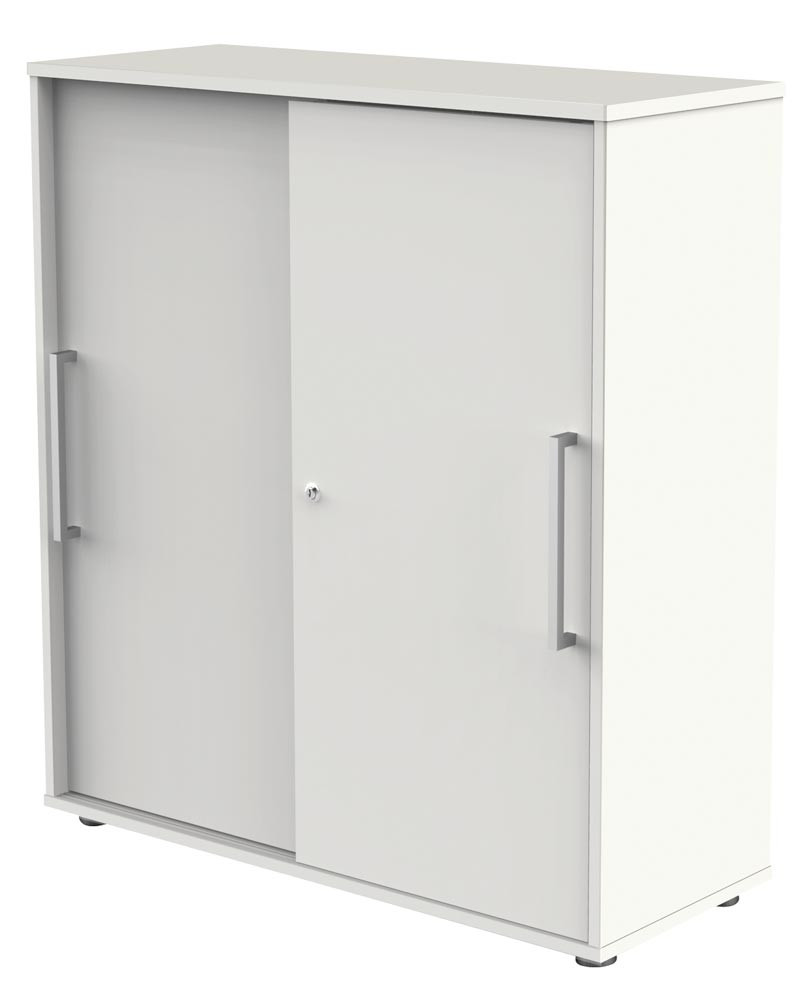 Schiebetürenschrank, BxTxH 1000x400x750 mm, 2 OH, 1 Boden, Edelstahlgriffe, Schloss, weiß E1986157