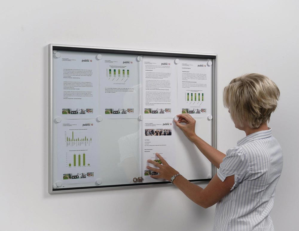 Schiebetürschaukasten, BxTxH 920x30x674 mm, 8xDIN A4, Alu-Profile, ESG, inkl. 4 Magnete E874112