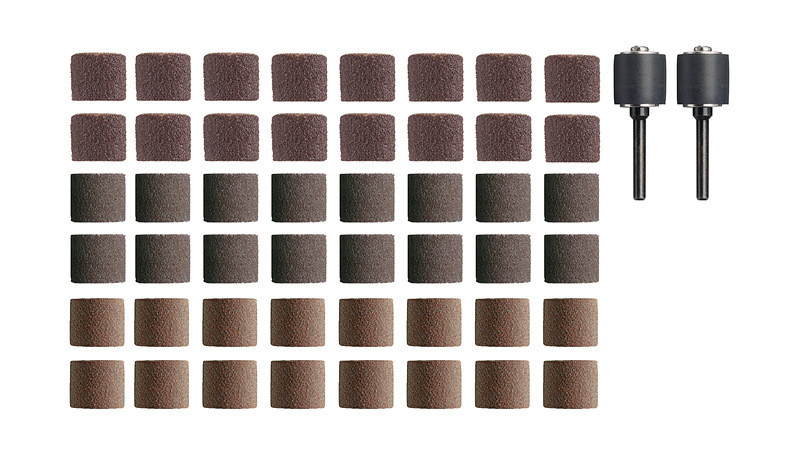 Produktübersicht. Produktübersicht. Das Dremel 771B-02 Variety Kit erweitert die Vielseitigkeit deines Multifunktionswerkzeugs und verwandelt es in ein unverzichtbares Werkzeug zum Schleifen und Feinschleifen. Dank einer ganzen Auswahl an Körnungen hast du stets das perfekte Band für jede Phase deiner Arbeit. Das Dremel 771B-02 Variety Kit erweitert die Vielseitigkeit deines Multifunktionswerkzeugs und verwandelt es in ein unverzichtbares Werkzeug zum Schleifen und Feinschleifen. Dank einer ganzen Auswahl an Körnungen hast du stets das perfekte Band für jede Phase deiner Arbeit. Was kann man damit tun?. Was kann man damit tun?. Erledige mühelos Aufgaben wie das Formen von Holz, das Glätten von Kunststoffen oder das Entfernen von Rost von Metalloberflächen. Diese Schleifbänder eignen sich auch perfekt für die Feinbearbeitung von Gummi und anderen weichen Materialien und geben dir die Kontrolle über jedes Detail deines Projekts. 2 x 430 Schleifband 13 mm (Körnung 60) inkl. Dorn Ideal zum Entfernen von Material 14 x 431 Schleifband 13 mm (Körnung 60) Perfekt für härtere Oberflächen und Schichten. 16 x 438 Schleifband 13 mm (Körnung 120) Hervorragend geeignet zum Vorbereiten von Holz, zum Reinigen von Putz und zum Erzielen glatter Oberflächen. Schleifband 16 x 446 13 mm (Körnung 240) Ideal zum Polieren und Hinzufügen von detaillierten Akzenten auf Holz und lackierten Oberflächen. Erledige mühelos Aufgaben wie das Formen von Holz, das Glätten von Kunststoffen oder das Entfernen von Rost von Metalloberflächen. Diese Schleifbänder eignen sich auch perfekt für die Feinbearbeitung von Gummi und anderen weichen Materialien und geben dir die Kontrolle über jedes Detail deines Projekts. 2 x 430 Schleifband 13 mm (Körnung 60) inkl. Dorn Ideal zum Entfernen von Material 14 x 431 Schleifband 13 mm (Körnung 60) Perfekt für härtere Oberflächen und Schichten. 16 x 438 Schleifband 13 mm (Körnung 120) Hervorragend geeignet zum Vorbereiten von Holz, zum Reinigen von Putz und zum Erzielen glatter Oberflächen. Schleifband 16 x 446 13 mm (Körnung 240) Ideal zum Polieren und Hinzufügen von detaillierten Akzenten auf Holz und lackierten Oberflächen. So funktioniert die Anwendung. So funktioniert die Anwendung. Befestige ein Schleifband am Schleifdorn 430, befestige diesen an deinem Dremel Multifunktionswerkzeug und wähle die passende Drehzahl für dein Material. Lasse das Werkzeug über die Oberfläche gleiten, ohne zu stark zu drücken, um die besten Ergebnisse zu erzielen. Für zusätzliches Selbstvertrauen übe mit Ausschussmaterial, bevor du mit deinem Projekt beginnst. Befestige ein Schleifband am Schleifdorn 430, befestige diesen an deinem Dremel Multifunktionswerkzeug und wähle die passende Drehzahl für dein Material. Lasse das Werkzeug über die Oberfläche gleiten, ohne zu stark zu drücken, um die besten Ergebnisse zu erzielen. Für zusätzliches Selbstvertrauen übe mit Ausschussmaterial, bevor du mit deinem Projekt beginnst. Empfohlene Drehzahl (min?¹). Empfohlene Drehzahl (min?¹). Hart- und Weichholz: 20.00030.000 Kunststoff: 15.00020.000 Aluminium und Stahl: 15.00025.000. Hart- und Weichholz: 20.00030.000 Kunststoff: 15.00020.000 Aluminium und Stahl: 15.00025.000.