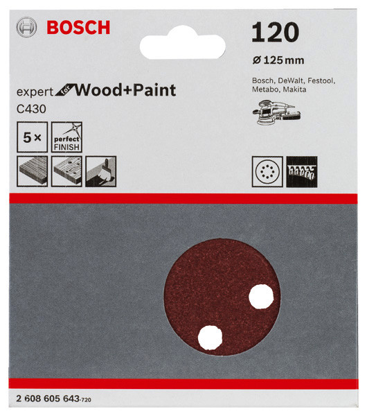 Schleifblatt C430, 125 mm, 120, 8 Löcher, Klett, 5er-Pack