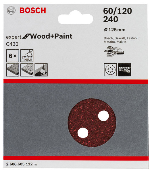 Schleifblatt C430, 125 mm, 60, 120, 240, 8 Löcher, Klett, 6er-Pack