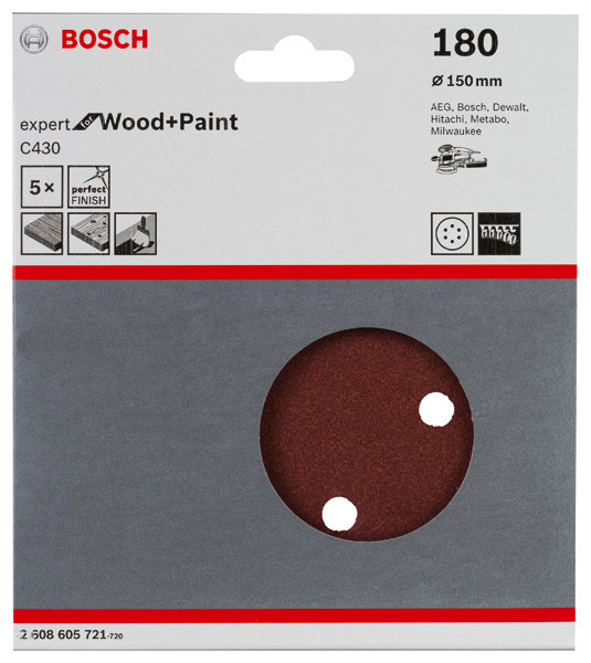 Schleifblatt C430, 150 mm, 180, 6 Löcher, Klett, 5er-Pack