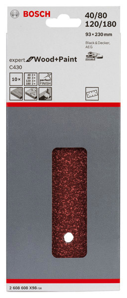 Schleifblatt C430, 93 x 230 mm, 2x40, 3x80, 3x120, 2x180, 8 Löcher, 10er-Pack