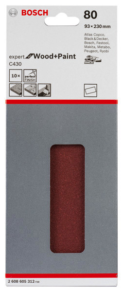 Schleifblatt C430, 93 x 230 mm, 80, ungelocht, gespannt, 10er-Pack