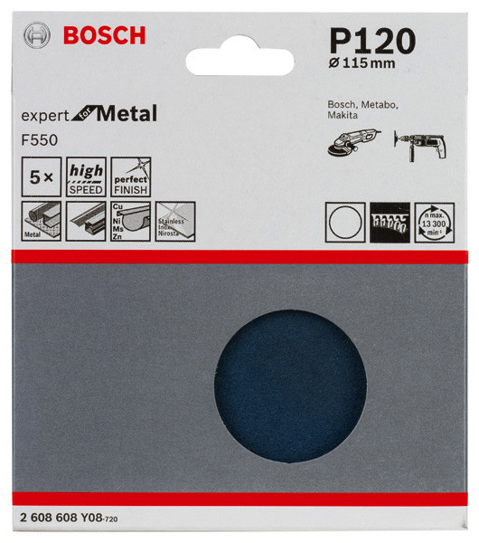 Schleifblatt F550, Expert for Metal, 115 mm, 120, ungelocht, Klett, 5er-Pack