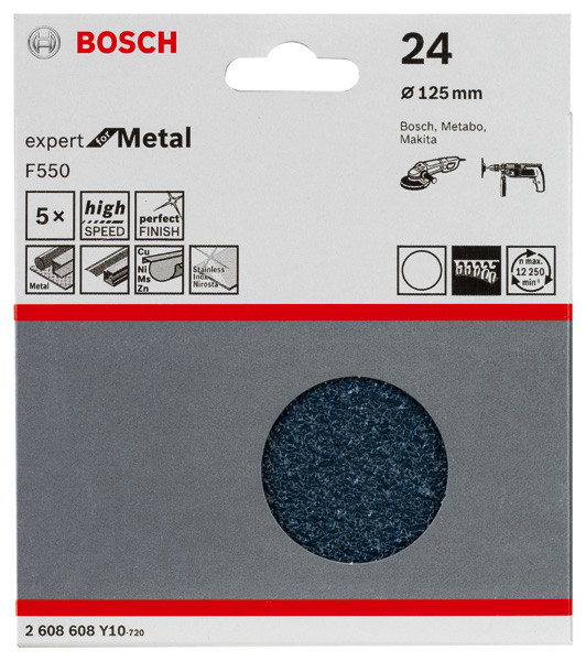 Schleifblatt F550, Expert for Metal, 125 mm, 24, ungelocht, Klett, 5er-Pack