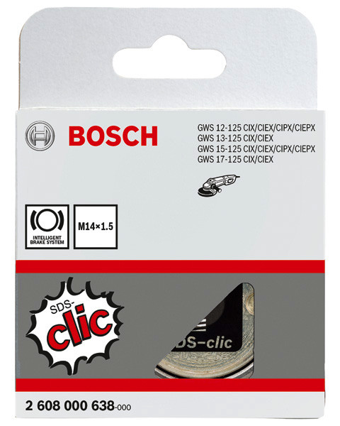 Die SDS clic M14 ist eine schnellsichernde Spannmutter zum schnellen und einfachen Spannen und Lösen von Winkelschleiferzubehör wie Schleiftöpfen, Diamanttrennscheiben und Schruppscheiben. Sie ist geeignet für alle Winkelschleifer mit Gewinde M14 und einem Produktionsdatum ab 08/90. Die Scheibe muss beim Zentrieren am Stützflansch ausgerichtet werden und nicht an der Mutter. Passend zu: GWS 12-125 CIEPX. GWS 12-125 CIEX. GWS 12-125 CIPX. GWS 12-125 CIX. GWS 15-125 CIEPX. GWS 15-125 CIEX. GWS 15-125 CIPX. GWS 15-125 CIX Professional.