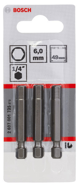 Schrauberbit Extra-Hart HEX 6, 49 mm, 3er-Pack