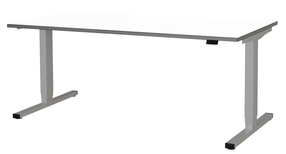 · Steh-/Sitzarbeitsplatz mit elektromotorischer Höhenverstellung · Stabile, robuste Bauweise für den täglichen Gebrauch · Melaminharzbeschichtete Tischplatte, 25 mm stark, mit ABS-Umleimer · T-Fuß-Gestell mit Nivelliergleitern für den Bodenausgleich · Geräuscharme, normgerechte Höhenverstellung von 650 bis 1250 mm · Integrierte Software-Kollisionserkennung (ISP), optional für höchste Sicherheit auch mit Sensor-Auffahrschutz (SAS) · Elektrifizierung erfolgt horizontal über einen abklappbaren Kabelkanal aus Stahlblech
