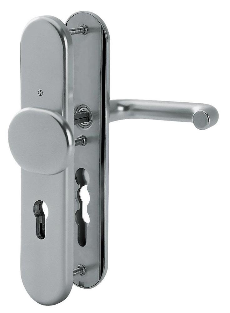 für Abschlusstüren · einbruchhemmend nach DIN 18257 · Knopfschild-Randhöhe: 12 mm · Stahlunterkonstruktion im Innen- und Außenschild · mit Rückholfeder-Paket · mit Schnellstift-Verbindung · DIN links / rechts verwendbar · hochfeste, verdeckte Verschraubung · einschließlich Befestigungsmaterial · PZ · Widerstandsklasse ES 1