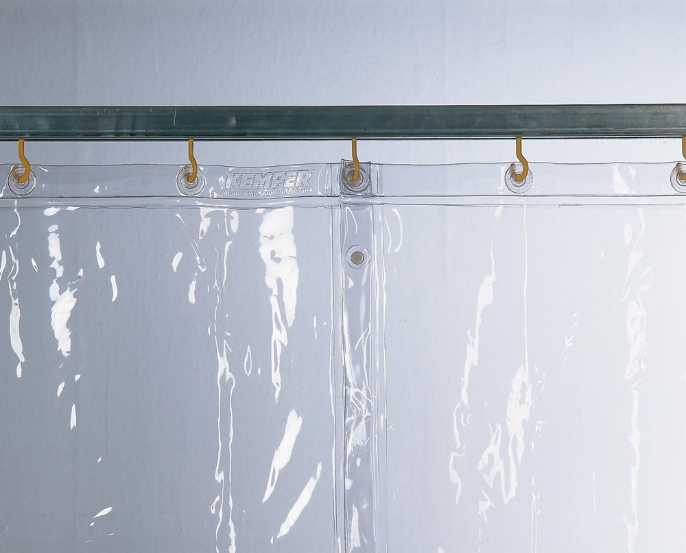 Ausführung: Schutzvorhang aus robustem, ca. 0,4 mm starken Kunststoff ∙ Funkenfest, schwer entflammbar ∙ Nach DIN EN ISO 25980 geprüft ∙ Zur Befestigung an einem Rohr oder an einem C-Profil ∙ Allseitig einreißfest gesäumt ∙ Verstärkte Ringösen zur Befestigung ∙ Eingeschweißte Kunststoffdruckknöpfe