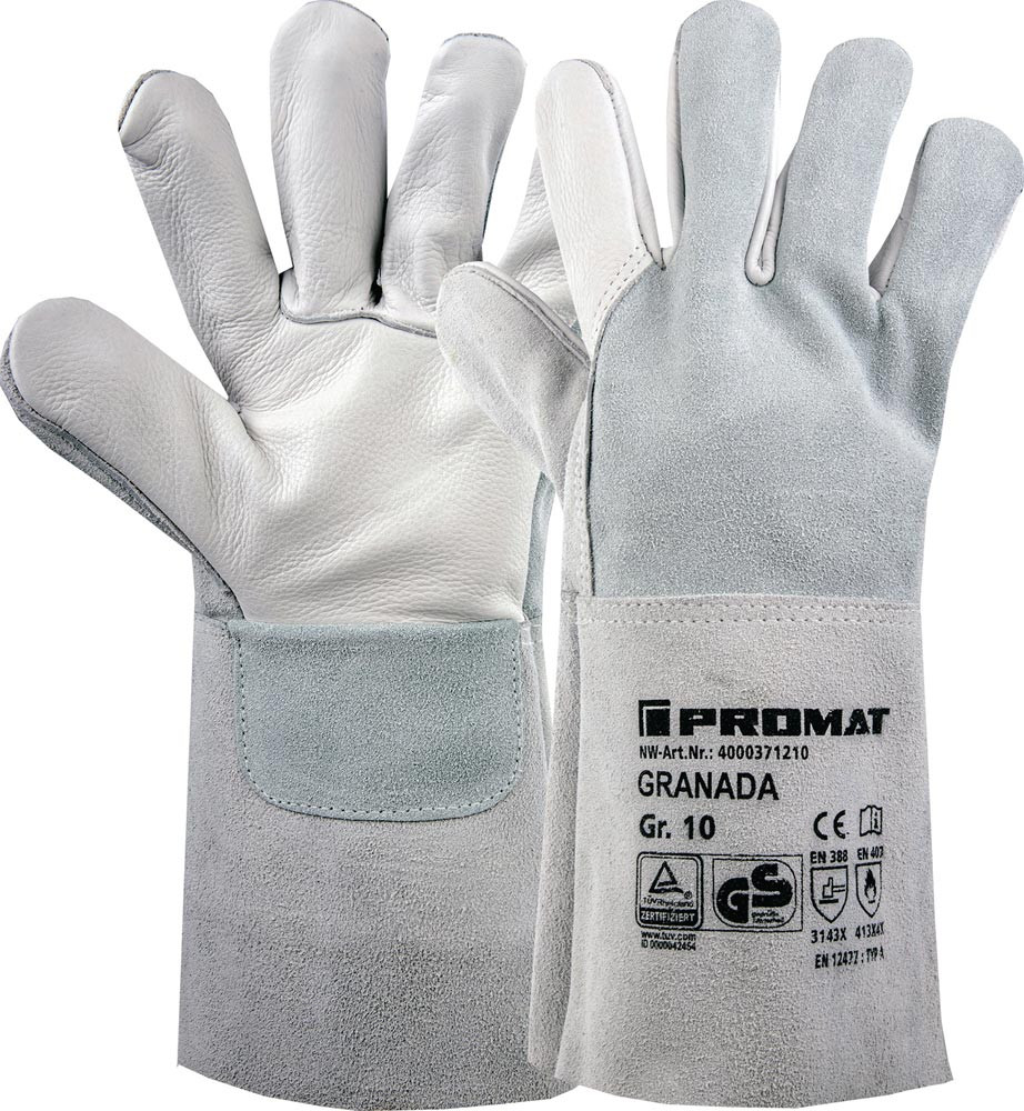 Schweißerhandschuhe Granada Größe 10 grau EN 388, EN 407, EN 12477 PSA-Kategorie II 6 Paar