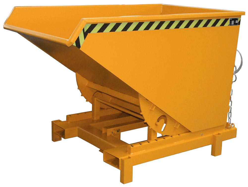 Schwerlastkipper, automatische Entriegelung, LxBxH 1310x805x970 mm, Volumen 0,3 cbm, Traglast 4000 kg, RAL 2000 gelborange E817030