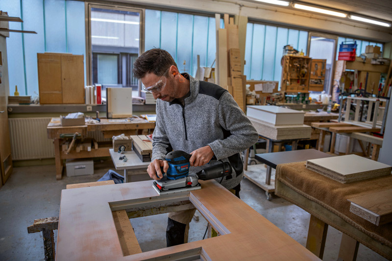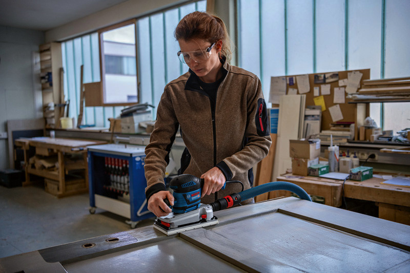 Schwingschleifer GSS 280 AVE, Der GSS 280 AVE Professional ist Boschs kabelgebundener Schwingschleifer in der 280-mm-Kategorie für Ergebnisse mit erstklassiger Oberflächengüte. Sein Gehäuse mit entkoppelter Schleifeinheit sorgt für konstanten Anpressdruck und perfekte Ergebnisse. Die einzigartige integrierte Vibrationsdämpfung sorgt für sehr geringe Vibrationen und gewährleistet Arbeiten ohne Unterbrechung. Die Schleifblätter lassen sich dank des Schleiftellers mit Klettverschluss und des Spannsystems einfach befestigen und sitzen perfekt. Der Schwingschleifer wurde zum Schleifen, Zwischenschleifen und Abschleifen von Rahmen sowie zum Feinschleifen konzipiert, und ist sowohl auf Holz, Furnier, Lack, Füllmasse als auch Mineral- und Acrylflächen einsetzbar. Das Gerät ist mit dem Bosch Click & Clean System kompatibel. Der GSS 280 AVE Professional verfügt außerdem über eine Staubbox mit integriertem Bosch Microfilter-System sowie eine Drehzahlvorwahl. L-BOXX 238 (1 600 A01 2G2). 1 x Schleifblatt C470, Best for Wood + Paint, 80 (separat erhältlich als 10er-Pack: 2 608 605 267). 1 x Schleifblatt C470, Best for Wood + Paint, 120 (separat erhältlich als 10er-Pack: 2 608 605 268). 1 x Schleifblatt C470, Best for Wood + Paint, 180 (separat erhältlich als 10er-Pack: 2 608 605 269). Zusatzhandgriff (2 602 026 175)