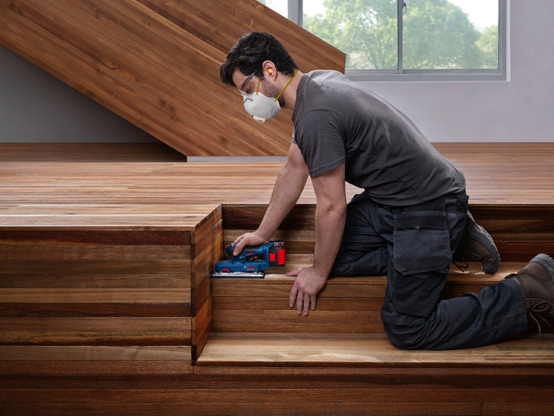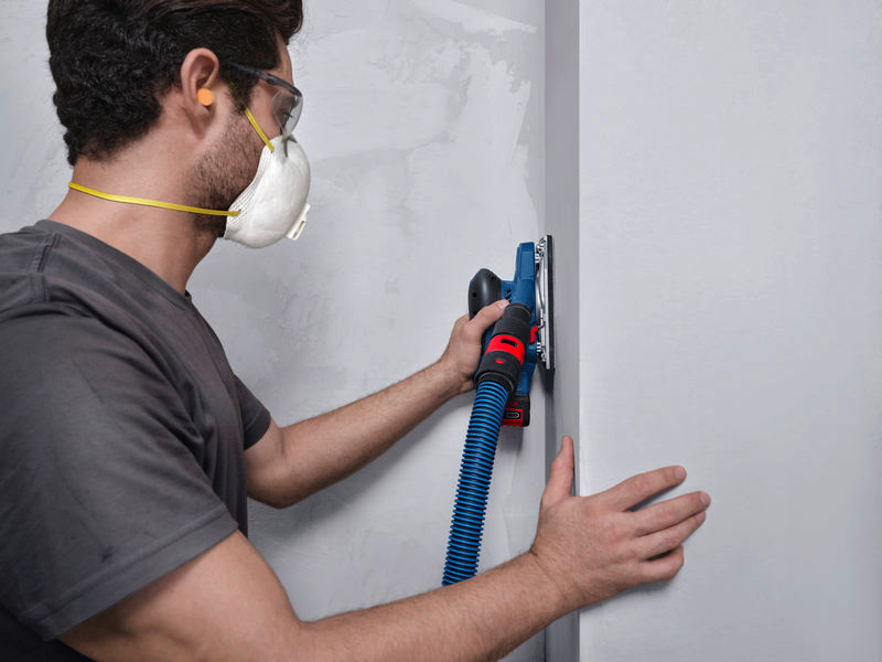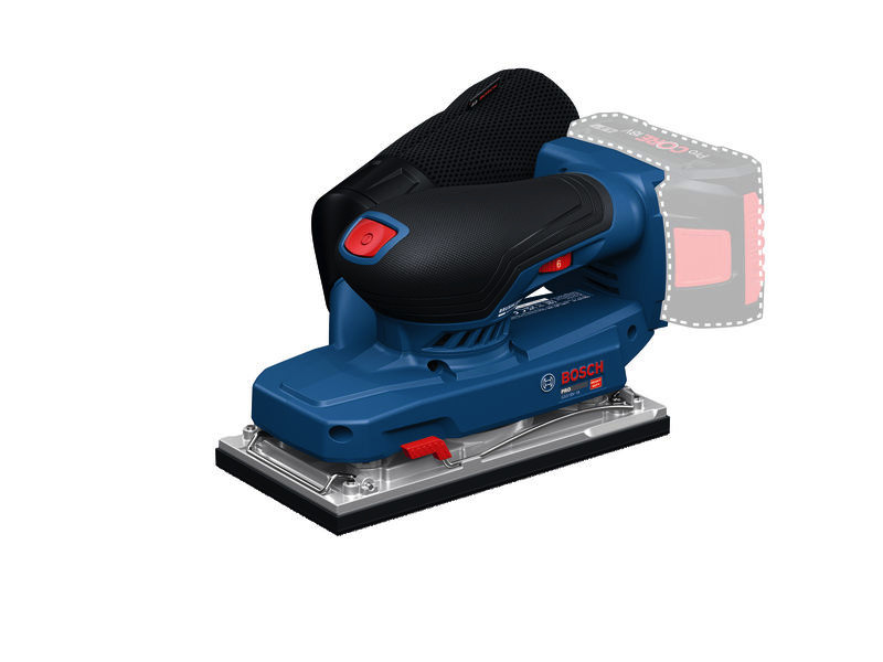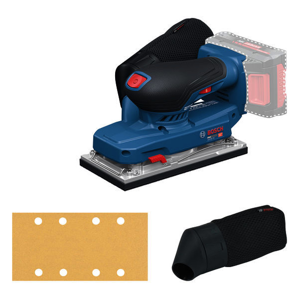 Schwingschleifer GSS18V-18, Der kabellose PRO GSS 18V-18 wurde für optimale Kontrolle dank der geringen Bauhöhe von bis zu 118 mm und hervorragender Werkzeugbalance entwickelt. Mit der geringen Vibration von bis zu 3,5 m/s2 kann ermüdungsfrei über lange Zeit gearbeitet werden, ohne dass die Hand sich taub anfühlt. Dieser Schleifer verfügt über eine effiziente Staubschutzlösung mit hoher Staubaufnahmerate von 85 % und einfacher Staubentsorgung. Der GSS 18V-18 dient zum Schleifen von Holz- oder Metalloberflächen und -kanten, Trockenbau/Putz, zum Schleifen von Oberflächen vor dem Streichen und zum Entfernen alter Farbe. Er ist mit dem Bosch Click&Clean System kompatibel. Dieses Werkzeug verfügt über ein hocheffizientes bürstenloses Motorsystem mit einer Laufzeit von bis zu 35 Minuten. Es besitzt einen versetzten Akku für Arbeiten in Wandnähe. Karton. 1 x Schleifblatt C470 (2 608 608 614). Staubbeutel