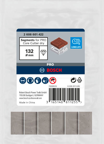Segmente für PRO Trockenbohrkrone, 132 x 11,5 mm, 1 1/4-Zoll UNC