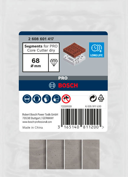Segmente für PRO Trockenbohrkrone, 68 x 11,5 mm, 1 1/4-Zoll UNC