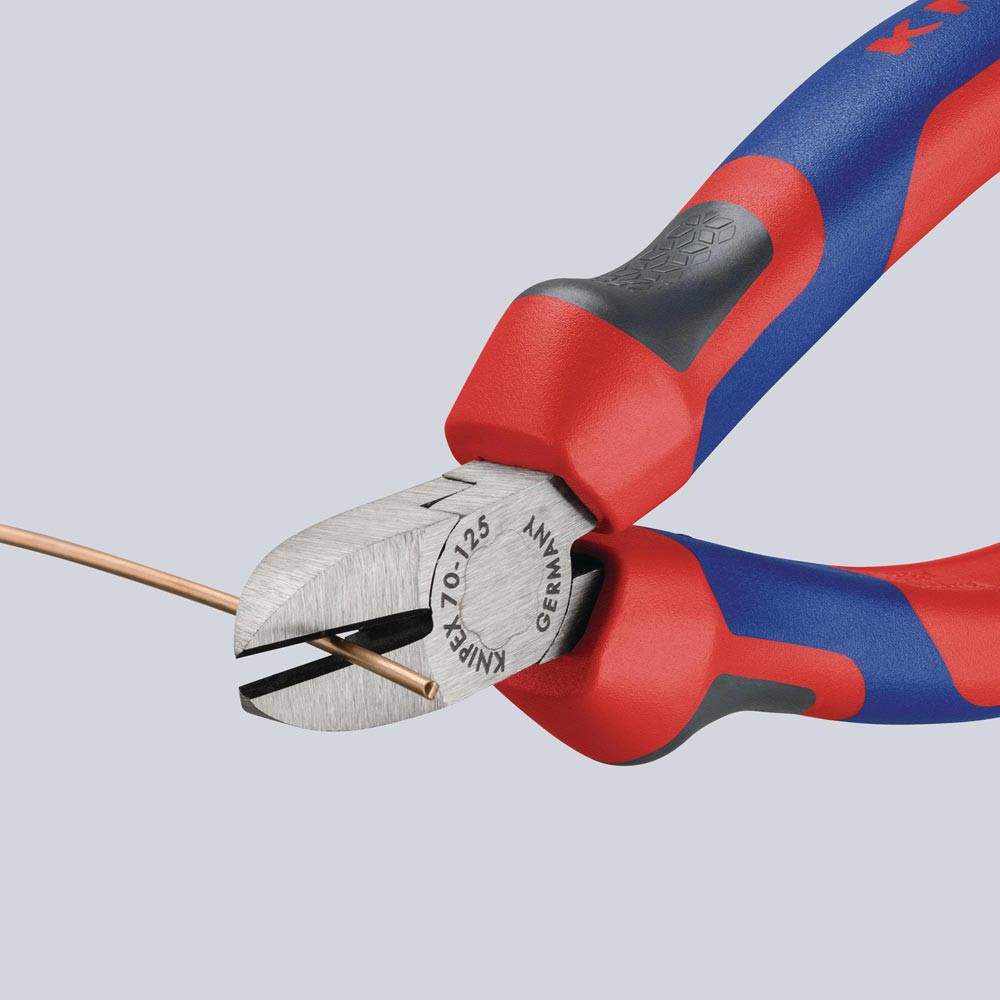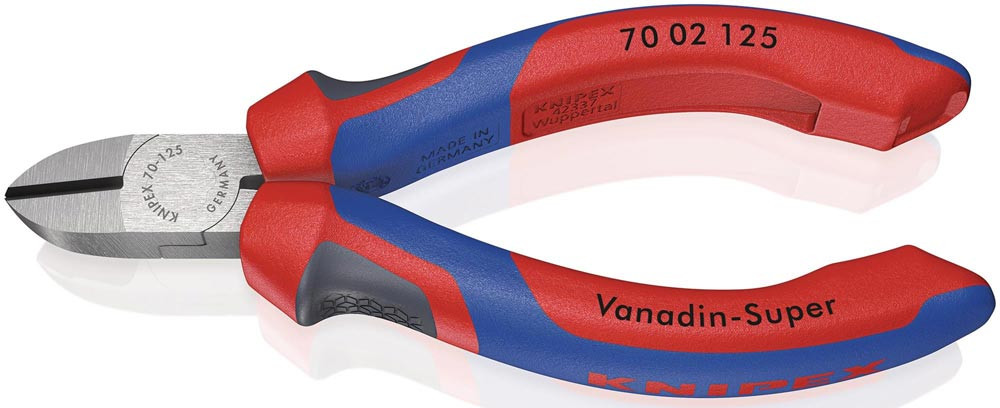 schlanke Kopfform · sauberer Schnitt bei dünnen Cu-Drähten, auch an den Schneidenspitzen · Schneiden zusätzlich gehärtet, Schneidenhärte ca. 62 HRC · Vanadin-Elektrostahl, geschmiedet, mehrstufig ölgehärtet