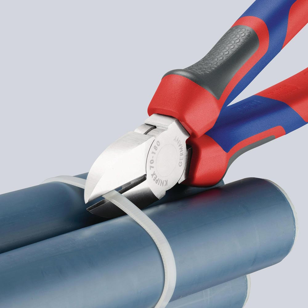 schlanke Kopfform · sauberer Schnitt bei dünnen Cu-Drähten, auch an den Schneidenspitzen · Schneiden zusätzlich gehärtet, Schneidenhärte ca. 62 HRC · Vanadin-Elektrostahl, geschmiedet, mehrstufig ölgehärtet