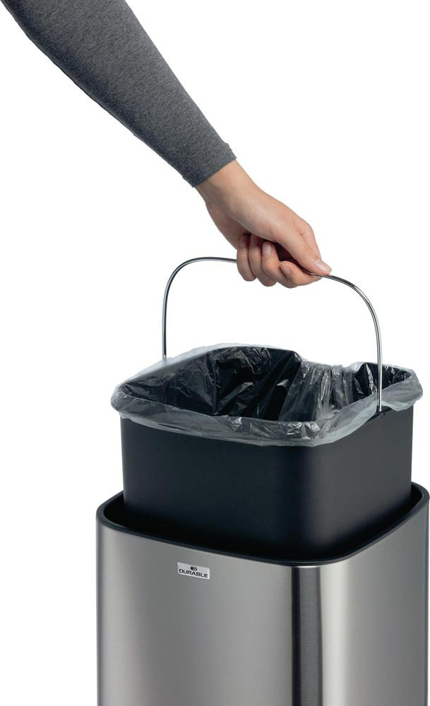 mit Sensor · ermöglichen die kontaktlose Abfallentsorgung in geschlossene Behälter, die besonders unter strengen Hygienerichtlinien erforderlich sind · berührungslose Bedienung durch Sensor-Technik · öffnet durch Bewegungssensor und schließt automatisch, alternativ auch manuell über Open/Close Tasten bedienbar · herausnehmbarer Inneneimer mit Henkel und Beutelfixierung · abnehmbarer Deckel zum einfachen Entleeren · Soft-Close Funktion des Deckels · Korpus aus Edelstahl mit Fingerprint-Proof Beschichtung · rutschfester Sockel und viereckige Form zum platzsparenden Platzieren · benötigt 4 AA Batterien (nicht im Lieferumfang enthalten)