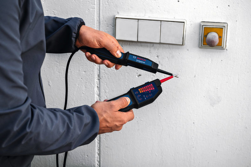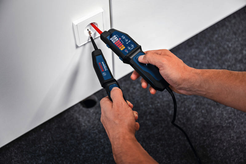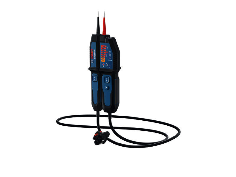 Spannungsprüfer GVT 1000-15, Der Spannungsprüfer GVT 1000-15 ist dein zuverlässiger Partner für die effiziente Spannungsprüfung bis 1000 V AC/DC. Das für Elektriker entwickelte Gerät bietet eine visuelle LED-Rückmeldung, einen Summer für akustische Alarme und eine Vibrationsrückmeldung, um vorhandene Spannung anzuzeigen, damit du deine Arbeit gefahrlos erledigen kannst. Ein bequemer Griff verringert Ermüdung, und mit einem 125 cm langen Kabel ist er ideal für Messungen in großen Schaltschränken. Dank robuster Ausführung gemäß Schutzklasse IP65 und Sturzfestigkeit bietet dieser Spannungsprüfer auch unter schwierigen Arbeitsbedingungen zuverlässige Leistung. Dieser Spannungsprüfer ist unverzichtbar für Elektriker, Facility Manager und Hausbesitzer. Er hilft beim Messen von Spannungen in Stromkreisen, Erkennen von stromführenden Leitungen und Vermeiden elektrischer Gefahren. Ob bei der Installation neuer Steckdosen zu Hause, der Überprüfung von FI-Schutzschaltern oder der Prüfung von Durchgang, Polarität oder Phasenfolge du kannst dich darauf verlassen, dass du mit dem GVT 1000-15 Professional bei der Arbeit geschützt bist und die Aufgaben leichter erledigen kannst. Der GVT 1000-15 Professional verfügt über eine eingebaute Taschenlampe für bessere Sichtverhältnisse in schwach beleuchteten Bereichen. Er erfüllt die Sicherheitsstandards CAT IV 600 V/CAT III 1000 V, und eine integrierte Selbsttestfunktion prüft die Integrität des Geräts für einen einwandfreien Anwenderschutz. Mit verbindbaren Griffen für die Einhandbedienung können Steckdosen und Anschlussbuchsen mühelos gemessen werden, sodass die Arbeit schneller erledigt ist. 2 x 1,5 V LR03-Batterie (AAA). Tasche