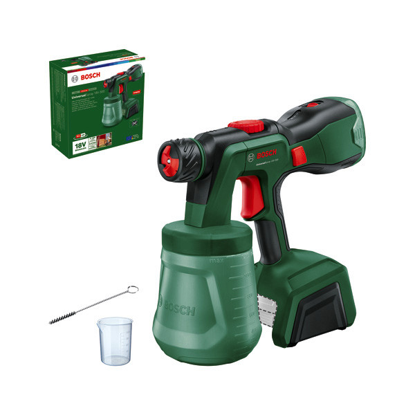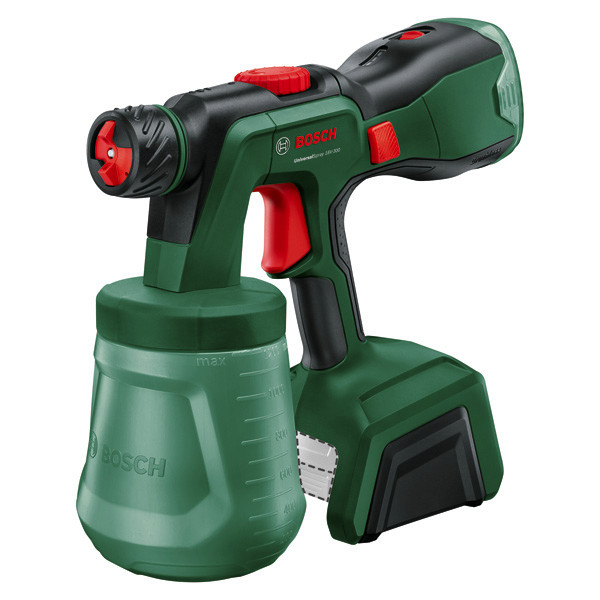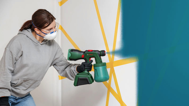 Sprühpistole UniversalSpray 18V-300. Mobiles ALLPaint-Sprühsystem für schnellen Farbauftrag und perfekte Ergebnisse. Vielseitiges und kraftvolles Sprühen aller Arten von Farbe. Eine praktische ALLPaint-Düse sprüht Lasuren, Lacke, Wandfarbe und mehr. Perfekte Ergebnisse mit Holz- und Wandfarbe dank Luftvolumeneinstellung. Syneon Technology für optimale Kraft und maximale Laufzeit. POWER FOR ALL ALLIANCE: 1 Akku, 10+ Marken, 150+ Produkte