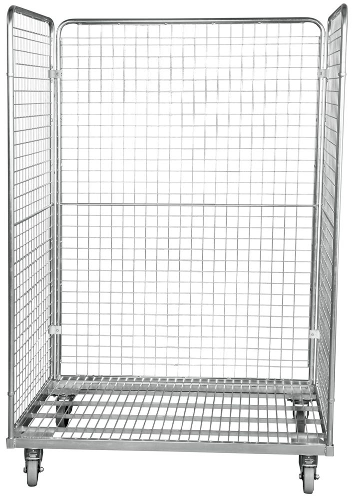 Stahl-Rollbox, 3-seitig, Nutzhöhe 1605 mm, LxBxH 1200x800x1800 mm, verzinkt