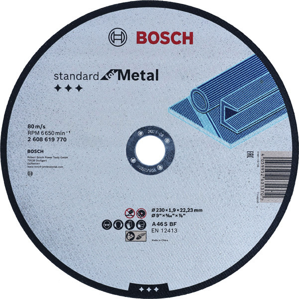 Die Trennscheibe Standard for Metal schneidet zuverlässig in Metall. Die Scheibe aus Aluminiumoxid wurde für gängige Metallarbeiten entwickelt. Diese Scheibe zum Schneiden von Metall verwenden. Trennscheiben von Bosch erfüllen die höchsten Sicherheitsanforderungen wie EN 12413.