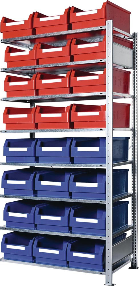 Steckregal H2000xB1000xT500mm Anbauregal 8 Stahlböden 12 x Gr. 2 blau, 12 x Gr. 2 rot