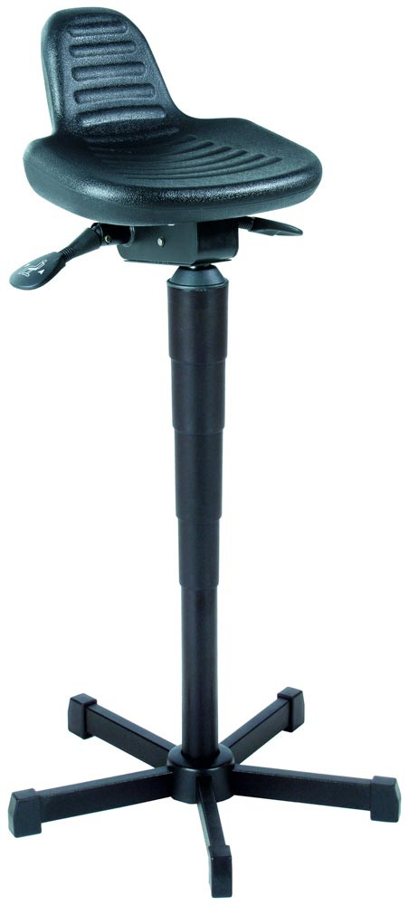 Stehhilfe mit Rückenlehne, Sitz PU-Schaum, Sitz Höhe 610-895 mm, neigbar, Gestell schwarz