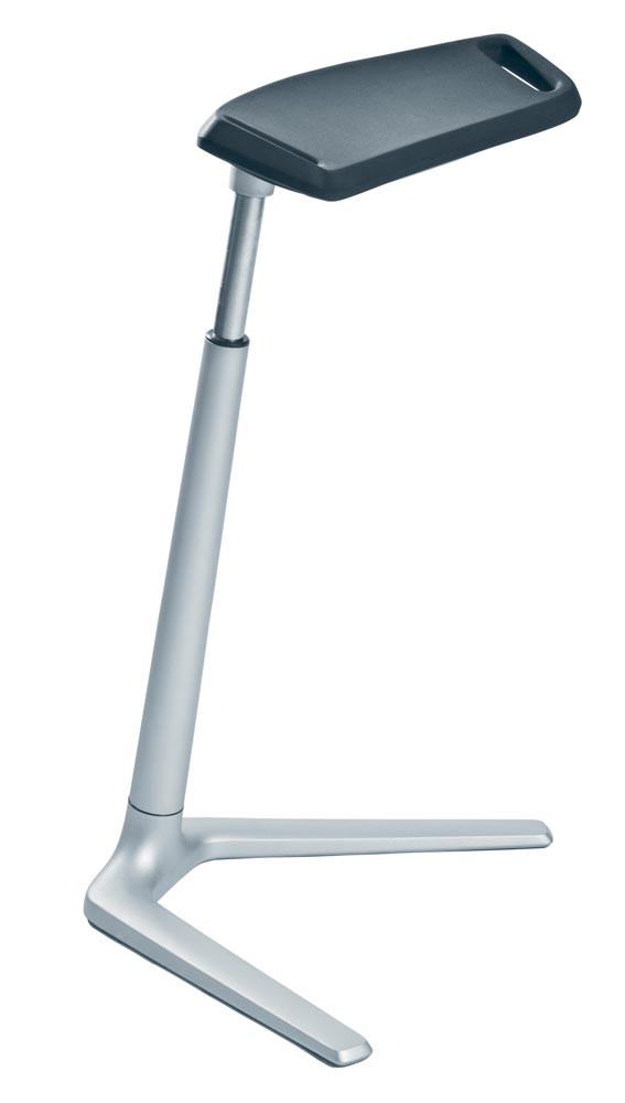 ∙ Stehhilfen mit silbernem Aluminium-Gestell und einem bis zu 20 Grad schwenkbaren Sitz mit SoftTouch-PU-Schaum ∙ Integrierte Komfort-Griffe ∙ Stufenlose Gasfederhöhenverstellung 620-850 mm ∙ Inklusive Wendegleiter für harte und weiche Böden aus Filz bzw. Kunststoff