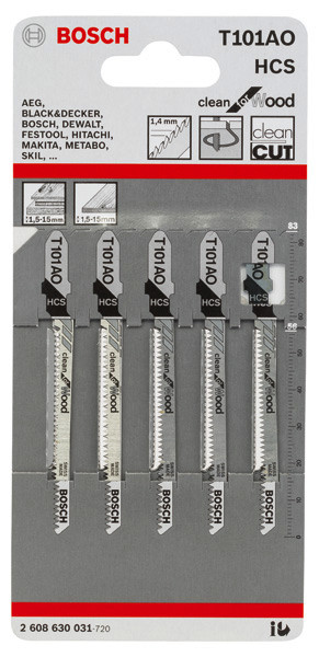 Stichsägeblatt T 101 AO Clean for Wood, 5er-Pack