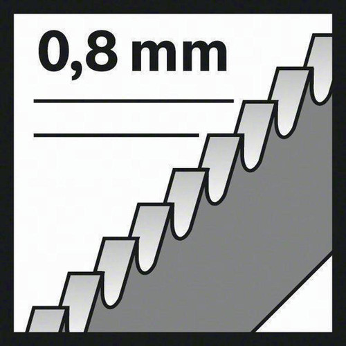Stichsägeblatt T 121 GF Speed for Metal. Das T 121 GF Speed for Metal Stichsägeblatt macht schnelle gerade Schnitte in Metall. Die Blatt-Abschrägung und das dünne Schnittdesign ermöglichen höchste Schnittgeschwindigkeiten. Die patentierte Zahngeometrie und die Kombination aus aggressiven · robusten Zähnen erhöhen die Schnittgeschwindigkeit zusätzlich. Die gefrästen · gewellten Zähne sind zum Schneiden von Metallblech konzipiert. Die Zahnleiste aus gehärtetem HSS (Hochgeschwindigkeitsstahl) und BIM (Bimetall) ist mit hochelastischem HCS (Kohlenstoffstahl) verstärkt · wodurch das Bruchrisiko reduziert und das Blatt bruchfest wird. Dadurch wird genügend Festigkeit als auch Flexibilität sichergestellt · um perforierte Metallbleche aus Stahl (Standard-Stärke) zu schneiden. Es ist mit einer sehr feinen Zahnteilung (0,8 mm) ausgestattet · um sehr dünne Metallbleche mit einer Dicke von 0,5 bis 1,5 mm zu schneiden. Für den Gebrauch mit Stichsägen mit T-Schaft-Aufnahme. Einnockenschaft. Schnell · bruchfest und langlebig. Inhalt der Verkaufspackung: 5 Stück.