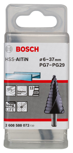 Stufenbohrer HSS-AlTiN, 6 - 37 mm, 10 mm, 93 mm, 12 Stufen