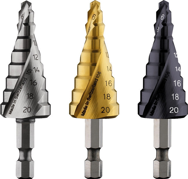 Der HSS-Stufenbohrer bohrt glatt und gratfrei Löcher mit verschiedenen Durchmessern. Er ist ideal zum Bohren und Vergrößern von Löchern geeignet. Ankörnen ist nicht erforderlich, da die Bohrspitze mit Kreuzanschliff das Anbohren erleichtert. Die CNC-gefräste Spiralnut entfernt optimal Spangut und ermöglicht gleichmäßiges Bohren. Axialer und radialer Reliefschliff ermöglichen höchste Scheideleistung und absolute glatte Ergebnisse. Der Stufenbohrer ist geeignet für dünnes Material aus Nichteisenmetall, rostfreiem Stahl und Kunststoff sowie Stahlblech und Kunststofftafeln.