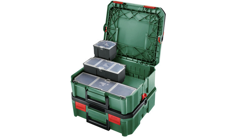 SystemBox Einzelne SystemBox - Größe M. Die praktischen SystemBoxen von Bosch ermöglichen eine übersichtliche und separate Aufbewahrung. Ordentliche Aufbewahrung für verschiedenste Alltagsgegenstände einschließlich Elektrowerkzeuge. Mal- und Bastelmaterial, Angelausrüstung, Fahrradzubehör, Spielzeug oder auch Bohrer alles hat seinen Platz in den praktischen SystemBoxen. Individuell erweiterbar um drei Zubehörboxen unterschiedlicher Größe und eine Box mit transparentem Deckel. Stapelbar und verbindbar zum einfachen Transport mehrerer SystemBoxen. Bequeme Anwendung mit vertikalem und horizontalem Handgriff. Einzelne SystemBox Größe M (1 600 A01 SR4). Karton