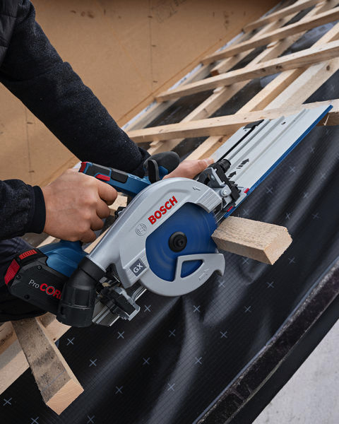 Systemzubehör FSN 740 X, Bei Tischler- und Dachdeckarbeiten oder beim Holzrahmenbau ist ein Werkzeug erforderlich, das jederzeit zuverlässige Winkelschnitte ermöglicht. Unsere Bosch Professional Führungsschiene für Querschnitte FSN 740 X ist ideal für Schnittwinkel von -60° bis +60°. Winkel sind mühelos einstellbar und es können Materiallängen von 740 mm im 90°-Winkel geschnitten werden. Diese flexible Führungsschiene für Querschnitte ist kompatibel mit der Kreissäge GX und lässt sich mühelos auf das Werkzeug schieben. Die Führungsschiene mit ihrem robusten Spanreißschutz ist garantiert langlebig. Darüber hinaus wird das Werkstück durch ihre sichere, rutschfeste Haftbeschichtung geschützt. Dies ist die ideale Führungsschiene für Querschnitte beim Schneiden von Holz- oder Holzverbundwerkstoffen in Balken, Fensterrahmen, kleinen Platten für Böden, Decken, Verkleidungen, Wandrahmen und mehr. Sie kann auch zum Zuschneiden von Dämmmaterial verwendet werden. Die Bosch Professional Fürhungsschiene für Querschnitte FSN 740 X hat die Maße 1.083 mm x 228 mm x 49 mm. Karton