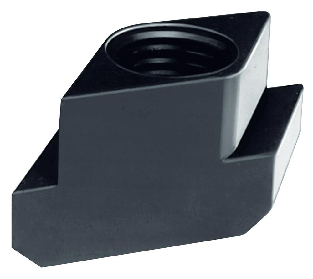 Rhombus-Nutensteine können von oben in die T-Nut eingesetzt werden. Besonders zweckmäßig bei langen T-Nuten, oder wenn die Belegung des Maschinentisches das seitliche Einführen von Spannschrauben oder Nutensteinen nicht erlaubt