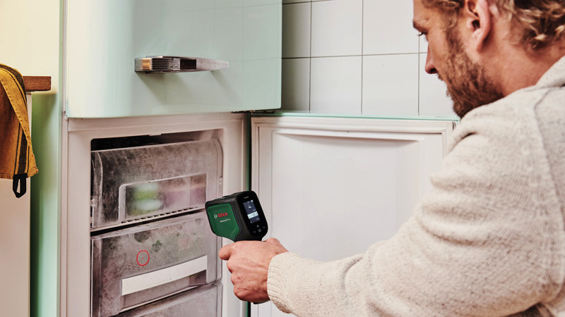 Thermodetektor AdvancedTemp. Für niedrigeren Energieverbrauch und höhere Lebensqualität. Müheloses Messen von Oberflächen- und Raumtemperatur sowie Luftfeuchtigkeit. Großer Temperaturbereich von -30 °C bis +500 °C. Erkennt unzureichende Isolation durch Wärmebrückenerfassung. Erfasst das Schimmelrisiko anhand einer Analyse und Beurteilung von Temperatur und Feuchtigkeit. Recycelte Materialien für Produkt und Verpackung tragen zur Nachhaltigkeit bei. Produkt mit Nachhaltigkeitsmerkmalen, weitere Informationen siehe unten. Karton. Aufbewahrungshülle. Quick Start Manual. 2 x Batterie 1,5V LR06 (AA)