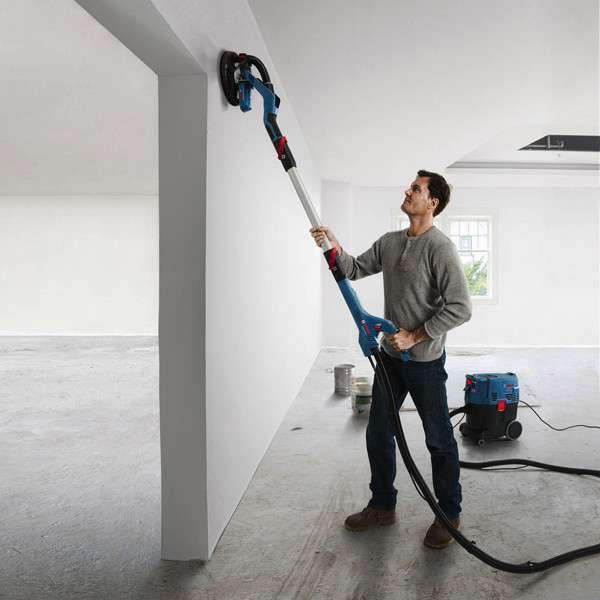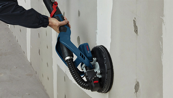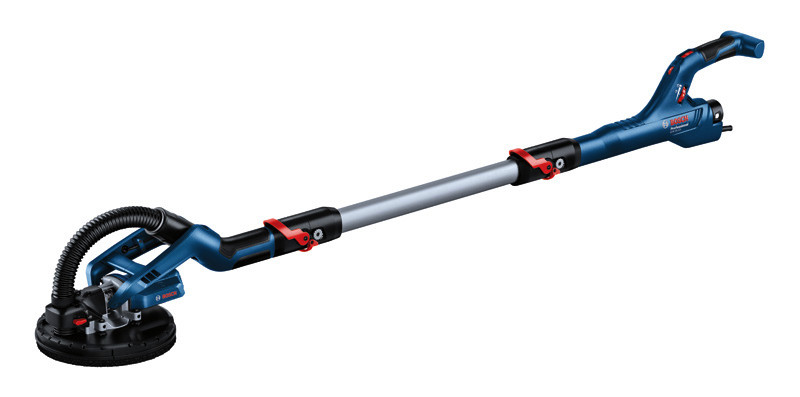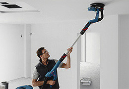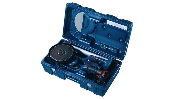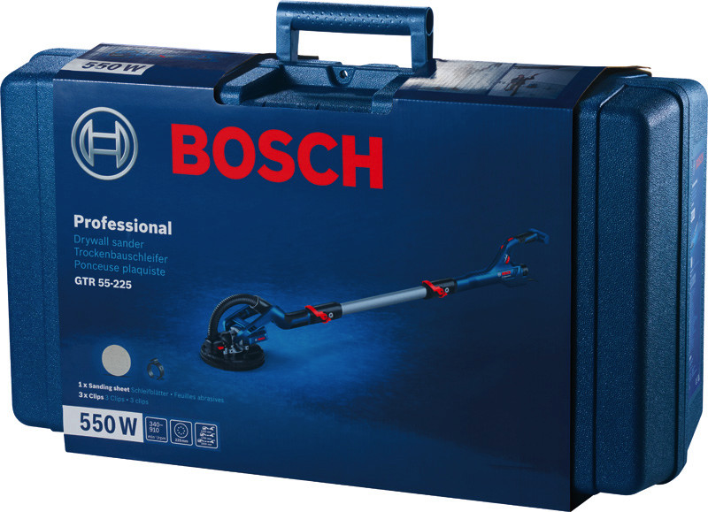 Trockenbauschleifer GTR 55-225, Für Maler, Trockenbauer und Innenausbauer, die umfangreiche Schleifarbeiten an Wänden und Decken durchführen oder Oberflächen zum Spachteln und Verputzen vorbereiten. Der neue Trockenbauschleifer von Bosch für müheloses Schleifen in alle Richtungen Handwerkerkoffer (6 082 762 3AS). 1 x Saugadapter, Universal (1 607 000 F2K). 1 x Schleifteller-Set weich (Stützteller und Zwischenscheibe), 215 mm (2 608 000 766). 1 x Schleifblatt M480, Best for Wood + Paint, 180 (separat erhältlich als 25er-Pack: 2 608 900 711). 3 x Kabelclip (separat erhältlich als 3er-Pack: ET-Nr. 1 619 PB6 088)