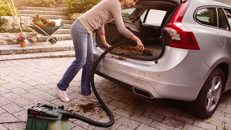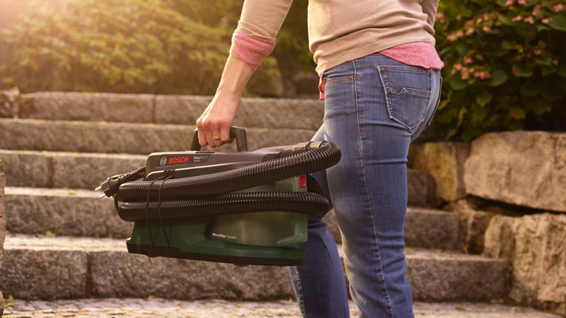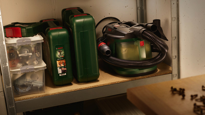 Trockensauger EasyVac 3. Mobiler, platzsparender Staubsauger für die Reinigung an jedem Ort. Dank seines kompakten, leichten Designs ist er einfach zu transportieren und zu verstauen. Sämtliches Zubehör wird für eine bequeme Aufbewahrung direkt am Sauger verstaut. Bei Verwendung mit einem Elektrowerkzeug wird er automatisch ein- und ausgeschaltet. Trockensaugen im Auto, im Haus oder bei Säge- und Schleifarbeiten. Papierfilterbeutel (2 609 256 F34). Vorfilter (2 609 256 F37). Flachfaltenfilter (2 609 256 F36). Fugendüse (2 609 256 F26). Bodendüse (2 609 256 F25). Universaladapter (2 609 256 F28). Schlauch 2,2 m, Ø 35 mm (2 609 256 F29). Karton