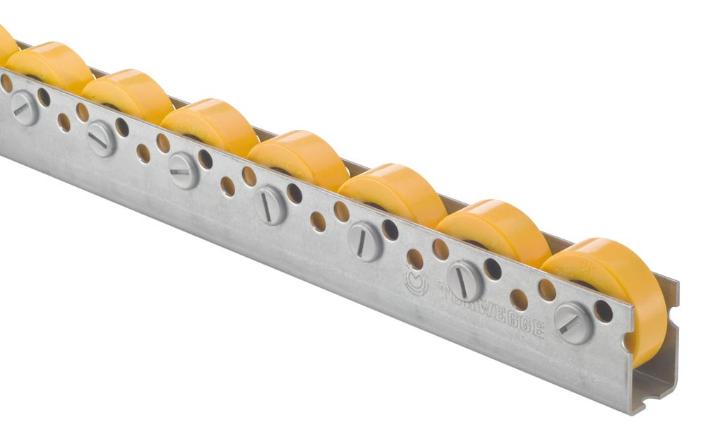 Universal-Rollenschienen finden ihren Einsatz in allen Bereichen der Förder- und Lagertechnik wie z. B. in Durchlaufregalen, als Führungsschienen, als seitliche Abweiser, als Tragschienen für Förderanlagen, als Gleitschienen in der Glasindustrie und vielem mehr.