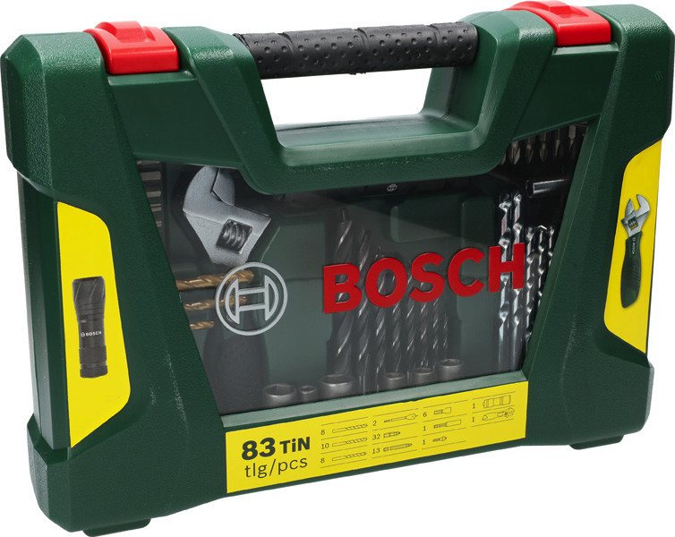 V-Line TiN-Bohrer- und Bit-Set, 83-teilig, mit Taschenlampe und Gabelschlüssel