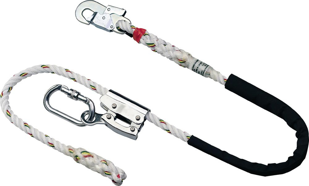 EN 358 · 16-mm-Ø-Polyamidseil · einstellbares Verbindungsmittel für Haltegurte zur Arbeitsplatzpositionierung und Arbeitsplatzstabilisierung bei Arbeiten an Gerüsten, Masten oder Bäumen · Verstellung erfolgt mittels einer Seilklemme, die bequem mit einer Hand bedient werden kann